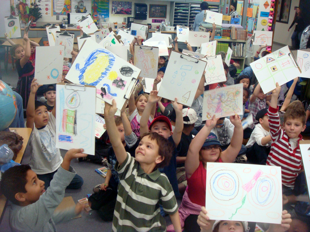 Last Friday, I taught art at my daughter’s school. I had the entire 2nd grade – some 80 students at once. They piled on the floor with clipboards eager to create their own masterpiece. Art is not offered until 3rd grade and I volunteered because I believe art is fundamental in early education.