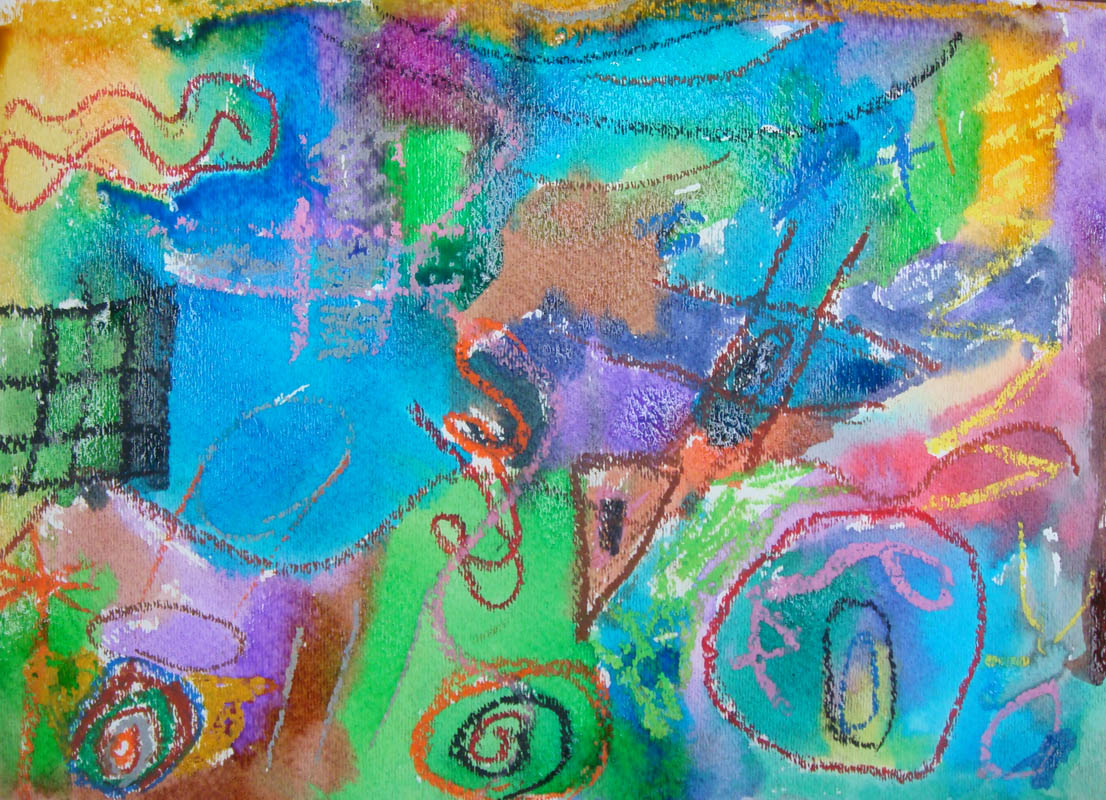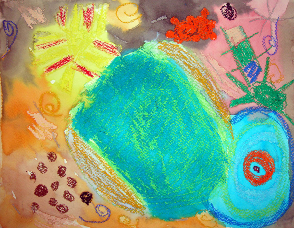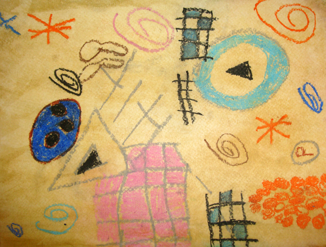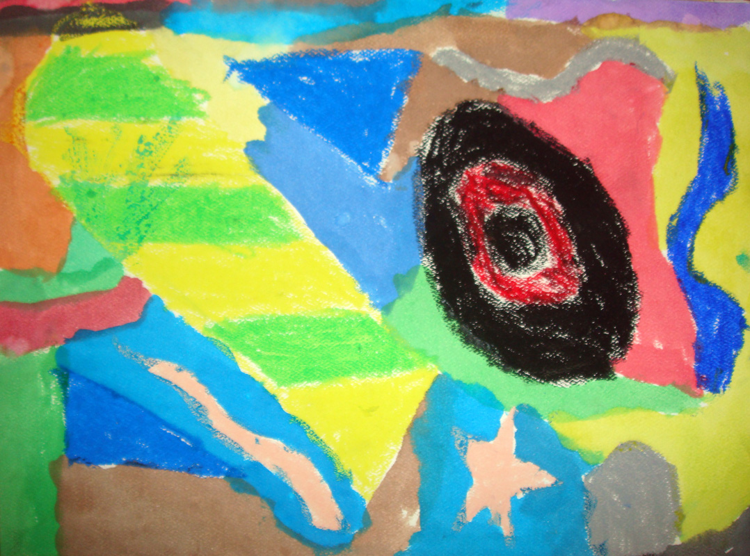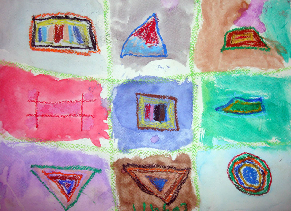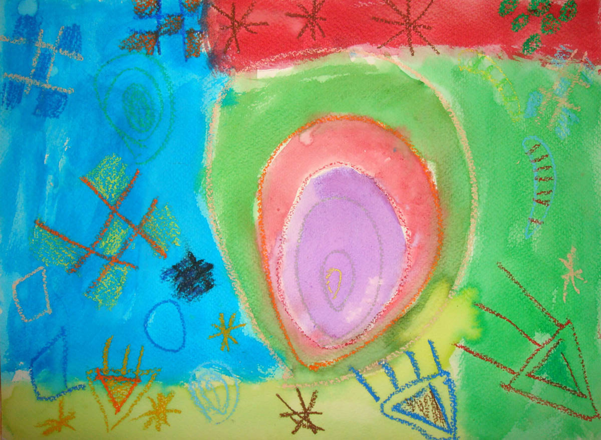 I showed them references to Kandinsky’s art as well as talk a bit about abstract art. I also showed the kids a jar filled with water and oil to demonstrate how the 2 substances never mix. Oil crayons and textured paper were passed out and the instruction was to draw anything “not real.” Then the classes separated back to their home rooms to do the “resist” with water color over the oil crayon. It’s really amazing to see the art from the kids. Next week I will make a mural of all the kids “Kandinsky” inspired art to hang in their cafeteria. Below is my lesson plan.