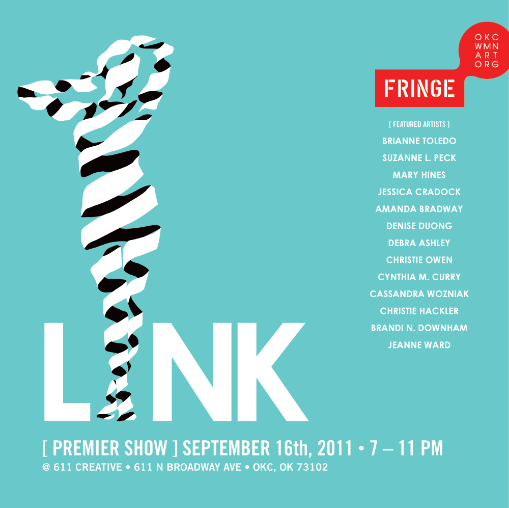 The women of FRINGE, the Oklahoma City Women’s Art Organization, would like to invite you to their premier show, LINK. This eclectic gathering of artwork focuses on how women are “linked” together through the very diverse roles they play in society. Each artist will address the concept individually; allowing for their own interpretation of how being a female affects their personal world. The work communicates how women universally share an unspoken kinship with one another, whether it is through apron strings or g-strings.